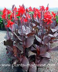 To finish off the plants in back, I got some red and yellow cannas. They get up to 5 feet tall. Here's a picture of some red ones.
